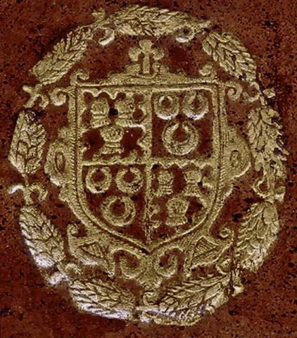 Dimensions: Arms Quarterly 1 & 4. On a bend between two horses [nags] heads erased three fleurs de lys (Pepys) 2 & 3. A lion rampant within a bordure engrailed (Talbot) Crest A camel's head erased bridled and lined ducally gorged Helmet of an Esquire Motto MENS CUIUSQUE IS EST QUISQUE