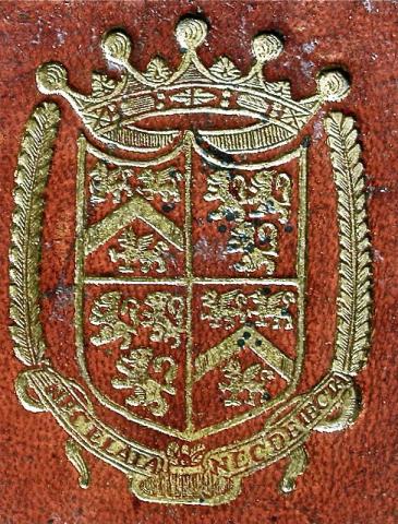 Dimensions: Arms Quarterly 1 & 4. A chevron between three griffins passant (Finch) 2 & 3. Three lions rampant (Fitzherbert) Coronet of an Earl Motto NEC ELATA NEC DEIECTA