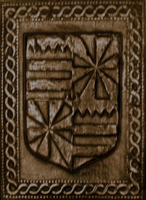 Heraldic Charges: bars (2)chief indentedgyronny (12)